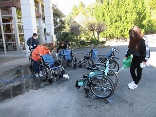 学校応援団の方々が、汚れた車椅子を洗ってくださいました。今日は少し寒かったので、水が冷たかったと思います。子供たちの見守りや車椅子の清掃、本当にありがとうございました。