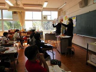 外での体験の後に、教室でバリアフリーについて教えていただきました。みんな、真剣な表情で聞いていました。お話をされた方が、「真剣に聞いてくれてうれしかったです。」と言われました。