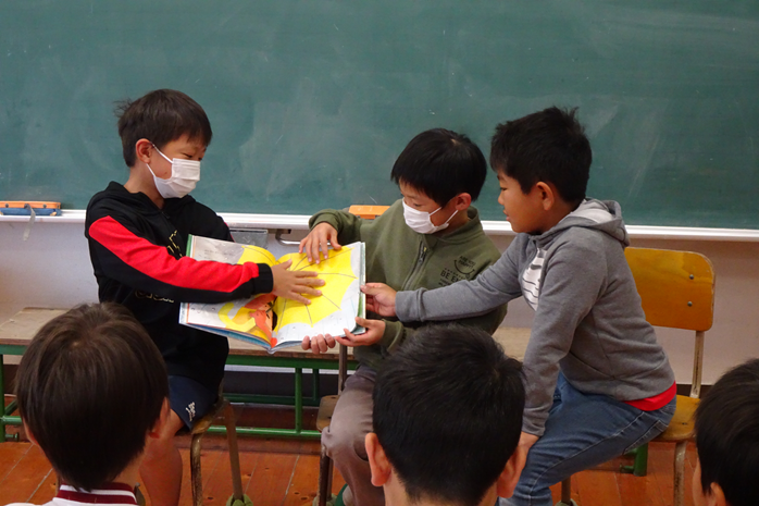 3年生は国語の授業で「1年生に読み聞かせをしよう」に取り組みました。班に分かれて、1年生に喜んでもらえる本を話し合って決めました。練習を重ね、本番では緊張した様子も見られましたがしっかりお話をきいてもらうことができて嬉しかった3年生です。
