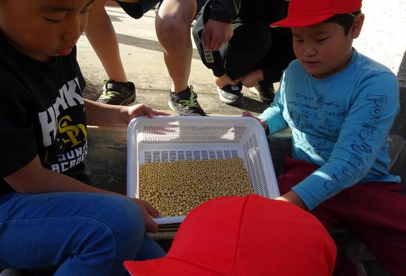 3年生は総合的な学習の授業「大豆はかせになろう」で、大豆を育てることに取り組んできました。無事に元気に育って、茶色に変わった大豆をたくさん抜き取ることができました。3年生の子供たちは、地面にこぼれた大豆を一粒一粒大切に拾い集めていました。「楽しかった~!」と達成感いっぱいの声が聞かれました。