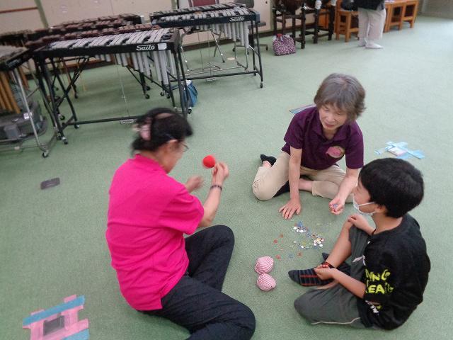 飾り作り終了後、お手玉やおはじき、折り紙をして交流を深めました。とても上手にされる地域の方に子供たちは驚いていたようでした。