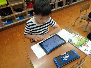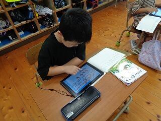1年生もタブレット端末の使い方に慣れてきました。使い方をすぐに覚えてしまいました。さすがです。