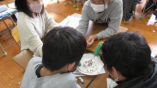グループを作ってそれぞれの考えを交流しました。話し合いの中で,子どもたちは活発に意見を交わしていました。