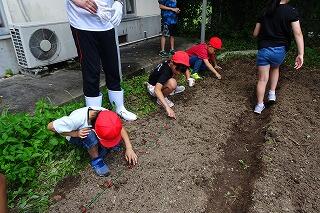 3年生では,総合的な学習の時間で大豆の種まきをしました。