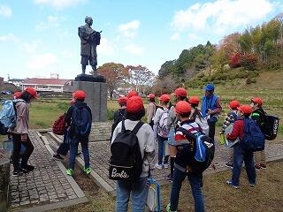 現地をフィールドワークし、事前学習で学んだことを確かめていきました。子どもたちは熱心にしおりにメモをしていました。
