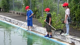 学校にもどってから、プールを観察に行きました。