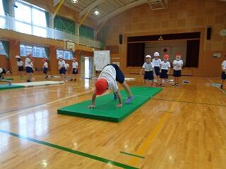 1年生の体育の学習の様子です。今回の授業はマット運動です。