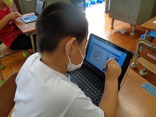 子どもたちは、タブレット端末の使い方をすぐに覚えて、上手に使っていました。