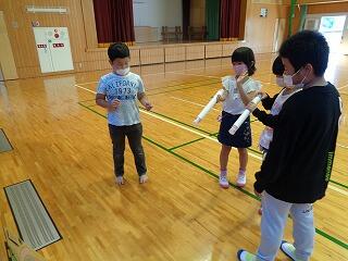 10月14日(金)に、2年生が1年生を招いて生活科の時間に交流しました。2年生が生活科で作ったおもちゃを使って一緒に遊びました。