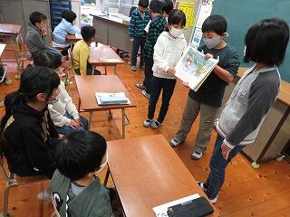 グループごとに読み聞かせをしています。とても上手な読み聞かせでした。一生懸命に読み聞かせをする3年生の姿もとてもすばらしかったです。