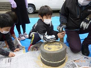 子どもたちは石臼をひいた感触に驚いたり、声を上げたりしていました。とても貴重な体験でした。