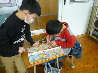 3年生の図工の様子です。今回の図工は、「くぎうちトントン」です。