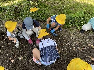 土を掘り返すと、色々な虫が出てきました。子どもたちは「ダンゴムシだ!」と喜んでいました。