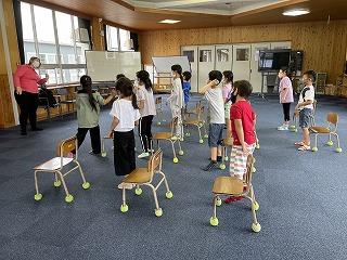 音楽をかけたり体を動かしたりして、楽しく英語に関わりました。