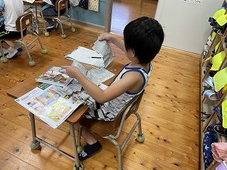 グループに分かれ、お祭りのようにおもちゃで遊んだり買い物をしたりするお店を作りました。