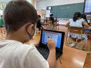 まずは、タブレットの使い方と注意点を確認しました。みんなが使うタブレットです。大切に使うよう、話をしました。