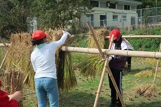 相谷の地域の方に来ていただき、いねかりの指導とサポートをしていただきました。また、保護者の方や町役場の方もサポートに来てくださいました。