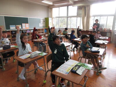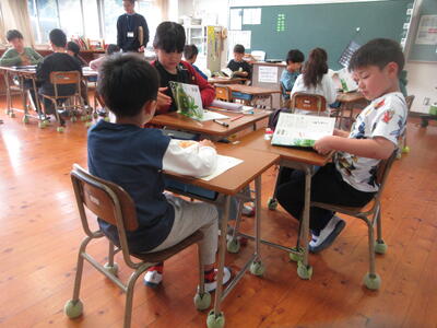 2年生は鉛筆を使っての硬筆学習。姿勢を正し、ゆっくりと丁寧に文字を書くことの大切さを学びました。 どの子も、書くことに集中しながら、一生懸命に取り組んでいました。大里先生には昨日と今日の二日間にわたり大変ありがとうございました。