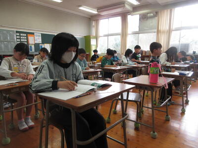 ゆっくり、しっかり、気持ちをこめて、先生の声かけに励まされながら、子供たちは集中して取り組み、自分の文字と向き合う時間を大切にしていました。正しい姿勢でていねいにこれからも取り組んでほしいと思います。