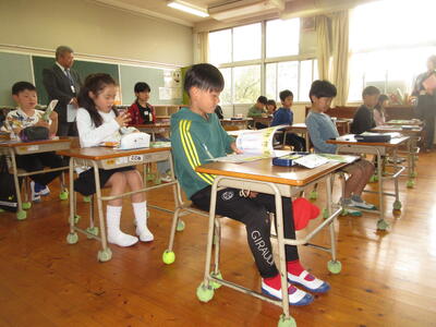 12月11日(木)、習字の先生の大里耕守先生をお迎えし、4・5年生は毛筆、2年生は硬筆の特別授業に取り組みました。