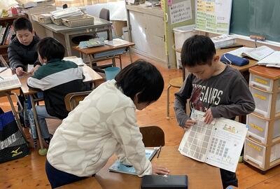 現在,2年生の生活科では「ありがとうの会」の企画と準備が行われています。今日もそれぞれの班に分かれて歌のプレゼントの準備をしたり,式次第の作成をしたり,感謝状を書いたりしていました。楽しみながら,はりきって準備をしていました。