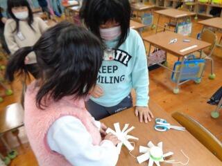 最初は、緊張気味の子供たちでしたが、地域の方と一緒に七夕の飾り作りを通して少しずつ打ち解けていったようです。