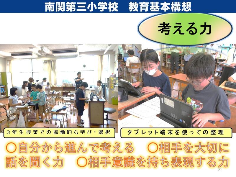 これらの力は、教科の学びだけでなく、日々の生活や地域との関わりの中でも育まれているものです。 南関第三小学校では、これからも子供たち一人ひとりの可能性を信じ、地域とともに歩む教育を大切にしていきます。
