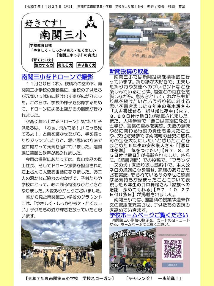 NO.16 251127 学校だより R7「好きです! 南関三小」16号(南関第三小学校).pdf