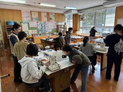 11月27日(木)、6年生は家庭科授業でミシンを使い裁縫を学んでいます。