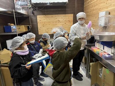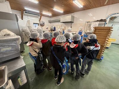 「しろうさぎ」では、あん入りのおいしいお餅が丁寧につくられている様子を見学しました。 もち米の香りが広がる中、子供たちは作業のひとつひとつをじっくり見つめ感心していました。