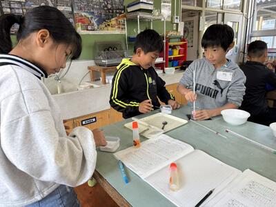 実験では、実際に水の量や温度を変えて確かめながら、目を輝かせて観察する姿が見られました。 結果をもとに、話し合って考えをまとめていきます。