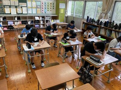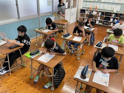 4年生は,これまでの学習の復習を行いました。抜群の集中力で復習問題を解き進めていました。素晴らしいですね。次週から「月や星の動き」の学習を行います。この学習では,月や星の観察をします。