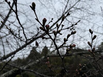 校庭の桜のつぼみが春の暖かな日差しを受けて膨らみ始めました。