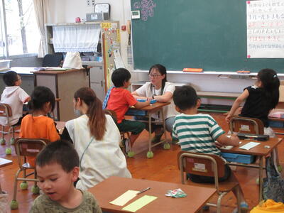 7月4日(木)、放課後子供教室で1年生が七夕の飾り付けを行いました。