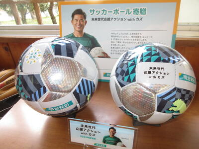 未来世代応援アクションwithカズの取組でサッカーボールを寄贈頂きました。思いっきりグラウンドでサッカーをして楽しんでください。