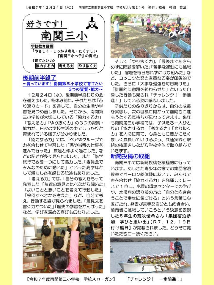 NO.21 251224 学校だより R7「好きです! 南関三小」21号(南関第三小学校)(送付用・HP用).pdf