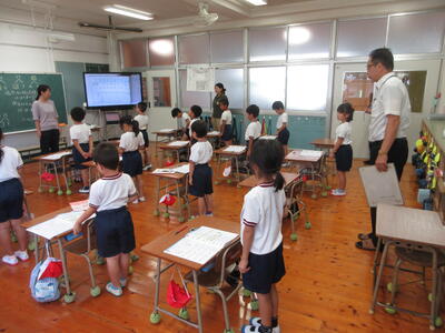 9月17日(火)、南関町教育委員会から寺田指導主事に来校していただき、授業改善に向けてアドバイスをいただいています。1年生の算数科授業では、たしざんやひきざんがどのように式で表せるのかを考えていきました。