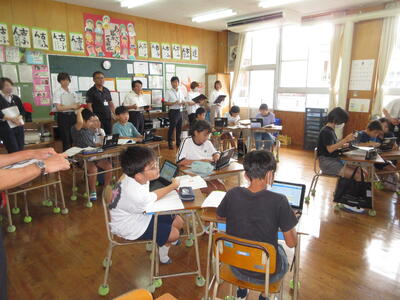9月10日(火)、南関町教育委員会から来校され、学校の様子や授業での頑張りを見ていただきました。どの学級も子供たちが先生とともに前向きに学ぶ姿が見られました。タブレット端末を使った学習や、ペアやグループを中心としたでの協働的な学びの姿の高まりを褒めていただきました。これからも協力する力、考える力、やり抜く力を発揮し、学びを深めてほしいと思います。