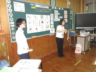 「書くこと」に至るまでには、聞いて理解すること、言うこと、聞いたり話したりすること、自分の考えや気持ちを話すことなどを経て、書く活動につながります。細かなステップをていねいにすることが大切だということを、示した活動の提示がありました。
