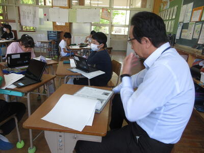 6月5日(水)、南関町教育委員会から寺田先生が来校され、授業参観をしていただきました。5年生国語科授業では、古典に慣れ親しむ授業を行い、5年生は平家物語や方丈記などの古典を読んで、リズムの言葉の良さを味わっていました。班でお互いに学びを深め、全体に発表できています。