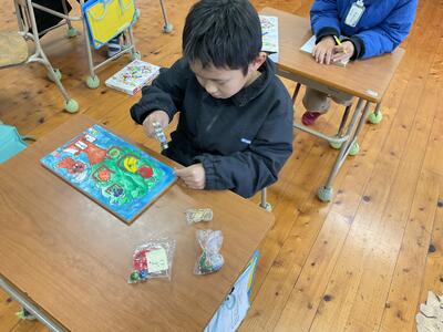 現在,図工で「トントンくぎ打ちコンコンビー玉」を学習しています。金槌を使って釘を打ち,ピンボールのようなゲームを作っています。最初は恐る恐る金槌を使っていた子供たちでしたが,どんどん扱いが上手になり,今では金槌を巧みに使いこなしています。作品もできあがってきました。何度か実際にビー玉を転がしてみて,予想と違う動きをしては釘を抜いて刺し直すということを試行錯誤しています。完成が楽しみです。