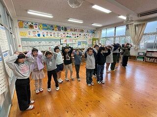 1曲目は、「ずいずいずっころばし」です。歌を歌いながら、班になって手遊びもしました。