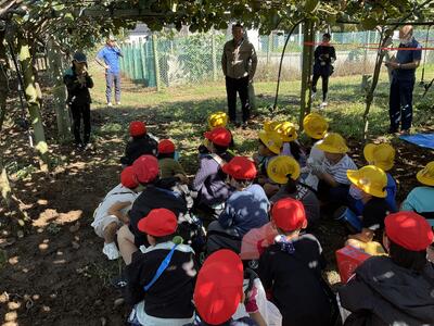 今日は1,2年生で,ニューガイアアグリさんのキウイ農園でキウイの収穫体験をしました。スタッフの方からキウイの秘密をたくさん教えていただきました。子どもたちにとって,初めて知ることが多く,たくさんの学びをえることができました。収穫したキウイは家でおいしくいただきます。ニューガイアアグリの皆様ありがとうございました。