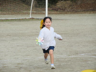楽しみにしていた、風車あそびをしました。