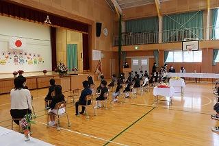 今年は6年生が式に参加し、1年生のお世話をしたり歓迎のことばを発表したりしました。