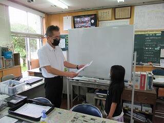 表彰を職員室で行いました。青少年育成に関する作文や標語募集、子ども会ビーチバレーやソフトボールの表彰がありました。