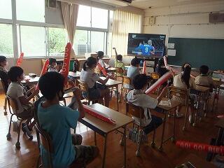 どんどんリードを広げ、見事ブラジルに勝利しました。南関三小の大先輩が、銅メダルを手にしました。子どもたちは、みんな自分のことのように大喜びでした。