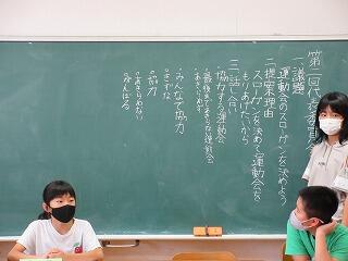 話し合いの結果、本年度の運動会スローガンは「絆を深めてあきらめず協力し合う運動会」と決まりました。