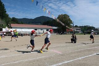 高学年のリレーです。力強い走りで素早くバトンをつなぐ姿がかっこよかったです。