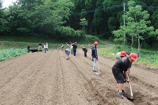 本年度も,地域の方のご厚意とご協力の下,サツマイモ作りをします。今回は6年生がいも畑のうね作りとマルチ張りに取り組みました。